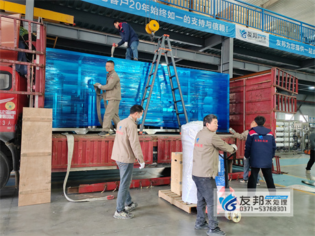 近日,鄭州友邦為新密洗滌行業(yè)量身定制的反滲透純水設(shè)備已順利裝車發(fā)貨。