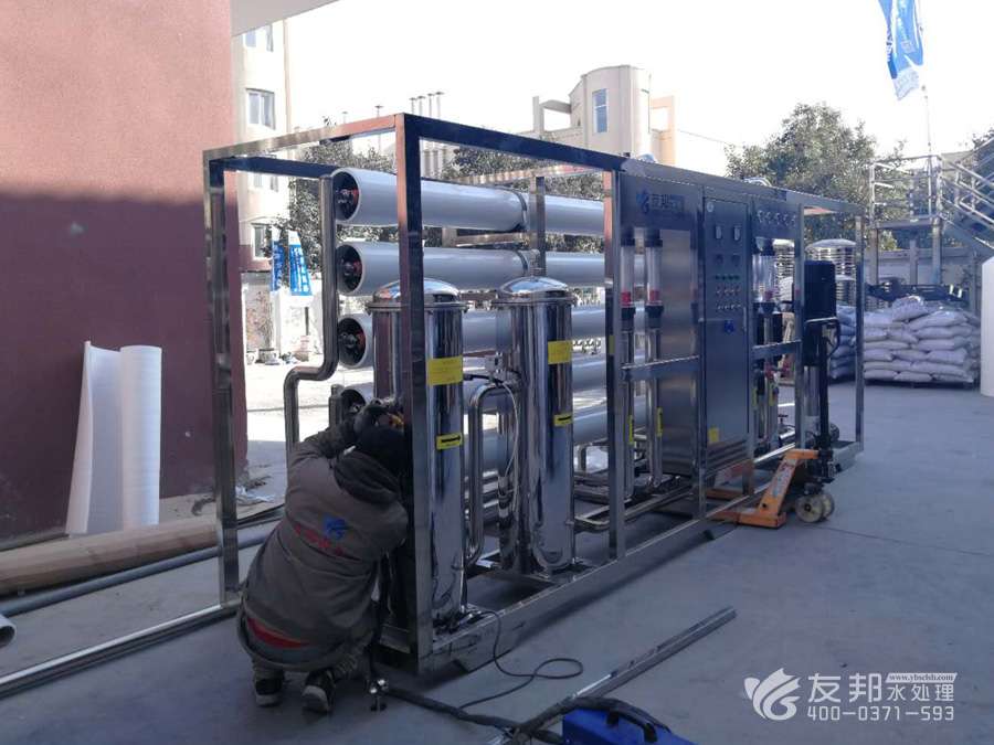 地下水或城市自來水——原水增壓泵——石英砂過濾器——活性炭過濾器——加藥裝置(阻垢劑)——精密過濾器(10微米)——精密過濾器(5微米)—— 一級(jí)高壓泵——一級(jí)反滲透過濾(可達(dá)到脫鹽率98%)——加藥裝置(PH調(diào)節(jié)) ——二級(jí)高壓泵——二級(jí)反滲透過濾(可達(dá)到脫鹽率99.5%以上)——純水箱